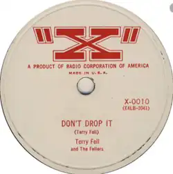 "Don't Drop It" is a song written and performed by Terry Fell (backing by The Fellers) and released on the "X" (RCA) label (catalog no. X-0010). In August 1954, it peaked at No. 4 on the Billboard country and western juke box chart and spent a total of 11 weeks on the charts.[1] It was also ranked No. 17 on Billboard's 1954 year-end country and western juke box chart.[2]