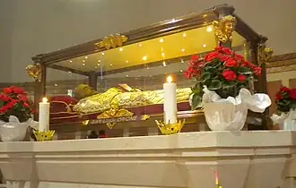 Orione's mortal remains have rested in the crypt of the Shrine of La Madonna della Guardia in Tortona, which he himself founded, since his burial on March 19, 1940.[5] His body was later exhumed in 1965 for examination.