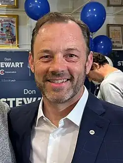 Don Stewart is a Canadian politician. A member of the Conservative Party of Canada,[2] he was elected Member of Parliament (MP) for Toronto—St. Paul's in a 2024 by-election.[3] He was the first Conservative to represent the riding in over three decades and the first Conservative candidate to win a riding in Toronto since 2011.[4] Amid a Liberal rebound in the polls, he lost in the subsequent 2025 election.
