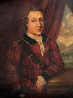 Donald Cameron of Lochiel (c. 1695 – 26 October 1748), popularly known as the Gentle Lochiel,[3] was a Scottish Jacobite, soldier and hereditary chief of Clan Cameron, traditionally loyal to the exiled House of Stuart. His support for Charles Edward Stuart proved pivotal in the early stages of the 1745 Rising. Lochiel was among the Highlanders defeated at the Battle of Culloden, and thereafter went into hiding before eventually fleeing to France.