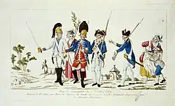 Lochiel was appointed colonel of the Régiment d'Albanie and commander of the Garde Écossaise by Louis XV; he was made a member of the Order of Saint Michael, and was also knighted by Charles.[27] He succeeded his father, who died in Boulogne circa 1747, as Lord Lochiel in the Jacobite peerage (French: Seigneur de Lochiel), but being a title in the Jacobite peerage it was only recognised in continental Europe.[28] Lochiel and his family took up residence at Fontainebleau, where he wrote Memoires d'un Ecossais, an account of his life, and the 1745 campaign from his own perspective, which was presented to King Louis.[29] He never returned to Scotland.