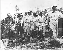 During the May–August 1945 allied campaign for Borneo, Starr was the only American war correspondent with General MacArthur when he first came ashore on Labuan Island on June 10 to inspect a beachhead following amphibious landings that morning. Starr's pooled accounts of the fighting were released to all newspapers.[7]