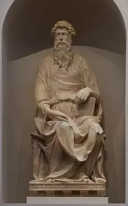 statue in niche (fourth of six) | marble | 188 × 56 × 45 | 1421 | Florence, Santa Maria del Fiore, Campanile | Florence, Museo dell'Opera del Duomo (copy on east side of Campanile) |