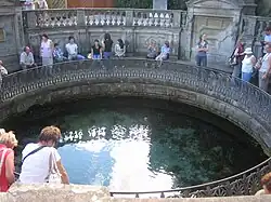 An enclosed karst spring in the park of Donaueschingen Palace, the source of the "Donaubach", is known as the source of the Danube.