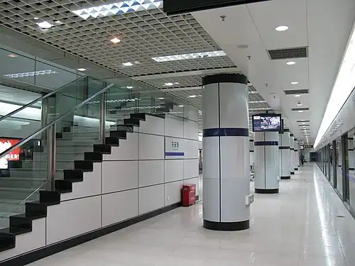 Dong'an Road (simplified Chinese: 东安路; traditional Chinese: 東安路; pinyin: Dōng'ān Lù) is a station on the Shanghai Metro. The station serves lines 4 and 7. Service began on Line 4 at this station on 31 December 2005,[1] while the interchange with Line 7 opened on 5 December 2009 with the initial section of that line from Shanghai University to Huamu Road.[2][3]