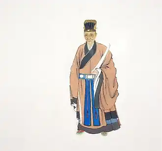 Dong Qichang (Chinese: 董其昌; pinyin: Dǒng Qíchāng; Wade–Giles: Tung Ch'i-ch'ang; courtesy name Xuanzai (玄宰); 1555–1636) was a Chinese art theorist, calligrapher, painter, and politician of the later period of the Ming dynasty.