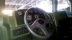 The EQ2050 is a four-wheel drive vehicle with an independent suspension system and central inflating system.[3] The EQ2050 has redesigned lights and radiators.[2] Dongfeng worked with AM General Motors to acquire American parts for the first EQ2050s made in production[9] before the company was able to produce the necessary parts in China.[2] The vehicle can be configured to be armed with machine guns, automatic grenade launcher, or anti-tank missiles mounted on top.[4] Body styles include soft, hard, truck, and van versions.[2][3]