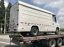 The Huashen Tianlai is rear wheel drive and is equipped with two spare tires and leaf spring suspension. The capacity of the Huashen Tianlai panel van reaches 14 cubic meters.[4]