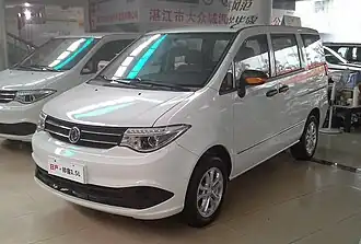 The 2018 model year also introduce the electric version of the Dongfeng Succe. The Dongfeng Succe EV was introduced during the 2018 Beijing Auto Show, and is powered by an 82 hp(60 kW)electric motor,[3] and is available as a passenger van or a panel van for the logistics industry. Both models feature a 49.572 kW·h battery and a 301 km range for the passenger van and 298 km range for the panel van version.[4]