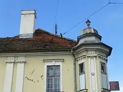 Protected, corner building at the corner of Dubrovačka and Glavna streets is known as the House with Sundial. First part of the house was built in 1823. On the facade looking on the Dubrovačka Street, a sundial was placed in 1828, which is still operational. It was damaged in 2000 by the workers who adapted the facade, but was repaired later that year. The sundial has an unusual layout, with numbers 8, 9, 10, 11 and 12 on the right side, and 1, 2 and 3 on the left side. It is the oldest sundial in Belgrade. Below the roof of the main facade is the coat of arms with an anchor.[25]