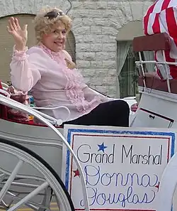 Douglas wrote and published a religion-based children's book titled Donna's Critters and Kids: Children's Stories with a Bible Touch. The book included Bible stories featuring animals combined with a coloring book. In November 2011, she released a new children's book titled Miss Donna's Mulberry Acres Farm.[13] In 2013, Douglas published a cookbook, Southern Favorites with a Taste of Hollywood,[14] which collects recipes of Southern cooking from show-business friends and colleagues such as Ebsen, Phyllis Diller, Valerie Harper, and Debbie Reynolds. The book also has a section on good manners called "Hollywood Social Graces".[2]