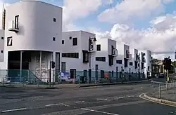 Donnybrook Quarter is a residential district of the Old Ford area of East London.[1][2] Constructed in 2006, it is a development by Peter Barber Architects.[3][4] Barber cites Le Corbusier, Adolf Loos and JJP Oud as influences on the project, and said that in consultancy meetings with locals "the residents were thinking, 'Spain! Holidays! Marbella!' I'm completely happy with that."[5]