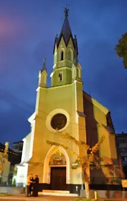 Construction of the church began in 1890 and was completed in 1892; it was dedicated to the Dormition of the Most Pure Virgin Mary the same year.[1] The church was built by the Romanian Greek-Catholic Church,[2] remaining in its possession until 1948, when the new communist regime outlawed the denomination.[3] Tit Bud was parish priest from 1897 until his death in 1917.[1]