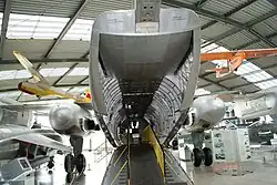 By mounting the engines in pods, the fuselage could accommodate a capacious hold for storing cargo, which was primarily accessed via a rear-facing loading ramp. Early designs of the Do 31 used more than four Rolls-Royce RB162s; the availability of more powerful versions of the Pegasus engine enabled the reduction to four supplemental lift engines.[13] Due to the engines being placed in nacelles, as opposed to within the fuselage as on the Harrier, the Pegasus had to be specially modified for the Do 31.[14]