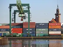 Since the collapse of its century-long steel and coal industries, the region has adapted and shifted to high-technology biomedical technology, micro systems technology, and also services. Other key sectors include retail,[7] leisure and the visitor economy,[8] creative industries,[9] and logistics.[10] Dortmund was classified as a "Node city" in the Innovation Cities Index,[11] ranked among the twelve innovation cities in European Union,[12] and is the most sustainable and digital city in Germany.[13][14] With its central station and airport, the third-busiest in North Rhine-Westphalia, Dortmund is an important transport junction for the surrounding Ruhr area as well as the Benelux countries, and with the largest canal port in Europe it has a connection to important seaports on the North Sea.[15]