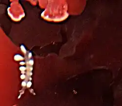 The body is colourless, but the cerata are coloured due to the digestive glands inside them. The colour of the digestive gland can be creamy yellow to orange-red to brown, depending on the colour of the hydroids that an individual specimen has been eating.[4] Compared with Doto kya and Doto columbiana this species lacks any dark pigment on the body.[5][6]