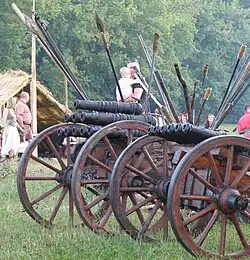 In Poland, cannons with as many as seven barrels were in use in the 16th century. These were similar to the volley guns and organ battery of the 19th century, but in a larger caliber.