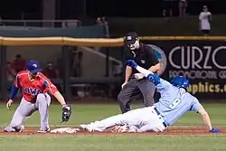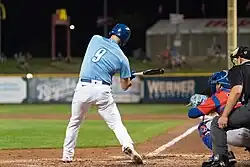 In baseball, a double is the act of a batter striking the pitched ball and safely reaching second base without being called out by the umpire, without the benefit of a fielder's misplay (see error) or another runner being put out on a fielder's choice. A double is a type of hit (the others being the single, triple and home run) and is sometimes called a "two-bagger" or "two-base hit".[1] For statistical and scorekeeping purposes it is denoted by 2B.[2][3]