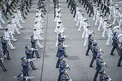 | 2011 | Ma Ying-jeou | Taipei | 1,000+ | The centennial event featured a skydiving show of 12 paratroopers of the Army Airborne Training Center above the plaza in front of the Presidential Office.[10] Military parade involving 1,000+ personnel, 71 aircraft and 168 vehicles.[11] On the part of the ground troops only the ROCAF Honor Guard Battalion and the ROCAF Composite Headquarters Band joined the parade on behalf of the armed forces. | |||