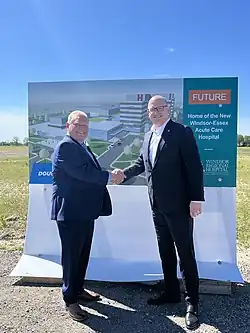 Ford called the Ontario health care system "broken" while relating the hospital experience of his brother Rob. He explained that Rob fell while being guided to a chair, and as the hospital was understaffed, Doug had to rush down eleven floors to find security guards to help. He stated that the province should support transportation to allow Northern Ontarians to travel quickly and easily to the south to receive medical care and should increase provincial support for Ontario's small and medium-sized hospitals.[61][62]