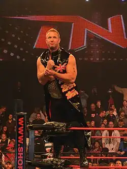 After another stint away, Williams returned on 14 February 2004 to defeat Chris Sabin in the pure wrestling tournament, but was later knocked out by CM Punk.[13] On 17 July, in Elizabeth, New Jersey, Williams defeated Jay Lethal, Nigel McGuinness and R. J. Brewer, to qualify for the Pure Wrestling final.[14] The final was contested later that evening, and saw Williams defeat Alex Shelley to capture the Pure Wrestling Championship.[14][15] Williams had two successful defences of the Pure Wrestling Championship, defeating Shelley in a rematch on 23 July, and Austin Aries the following day.[15][16][17] He would go on to lose the title to John Walters on 28 August.[15][18]