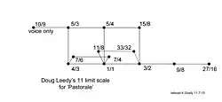 Principal works include: Trio (1960) fl, hn, pf. Perspectives (1964) hn. Quintet 1964 cl, bn, tp, db, org. Antifonia (1965) 2tp,2tb. Decay (1965) theatre piece. Music for Percussion (1965) theatre piece. Usable Music for Very Small Instruments with Holes (1966). Usable Music II in B♭, (1966) chamber ensemble. 88 is Great (1969) pf 18 hands, Dulces exuviae (Dido's Lament after Virgil) (1969) ssaattbb. Teddy Bears Picnic (1969) theatre piece. Gloria (1970) s, satb, orch. Sebastian (1971–74) chamber opera. Music for Meantone Harpsichord (1974–86). Canti (1975) cb solo with fl, va, gui, mar, vib. Symphoniae sacrae (1976) ms, viola da gamba, hps. Hymns (Rg Veda)(1982) chorus, gamelan. Pastorale (1987) setting of an Ode of Horace for chorus and retuned piano in Just Intonation, four hands. Three Symphonies (1993) orch. without conductor, Piano Sonata 1994. Is This a Great Country, or What? (1995) multimedia. Hiroshima–Nagasaki 1945–2005 for tuned bowls or bells, crotales (2005). Of special interest is his extended piece, _Harpsichord Book, Part III: Toccata, UtReMiFaSolLa and Chorale For Harpsichord in Just Tuning, _ which uses a scordatura, set to a Raga of his own invention, apam napat, or "Son of Water [Fallen Leaf Press, Berkeley, pub. 1989.
