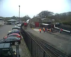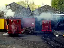 Beyond the platforms stand the locomotive shed, machine shop, paint and carpenters' shops in two rubble stone buildings built in the 1890s. The locomotive shed is capable of holding up to 12 locomotives in addition to which the single road workshop can store up to five locomotives at any one time. This facility features overhead lifting gear which is capable of lifting locomotive boilers from the frames to carry out maintenance; there is also a static beam engine and wheel lathes located in this shed, which also houses the blacksmith and plant room to the rear, the former being converted from a stores area in 2001.