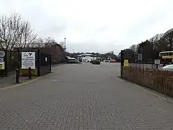 Beyond the complex is the modern carriage shed which was erected in 1999, on the site of a coal yard capable of holding twelve carriages across two roads with single carriage-length maintenance pit. This replaced the 1893 original which was demolished to make way for the Bankc Circus development and bus depot adjacent, this held all seventy-five bogie carriages and stood to the rear of the signal box.