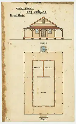 The Port Douglas Court House was constructed in 1879 as the first court house in the town. It is a simple timber structure with verandahs to all four elevations.[1]