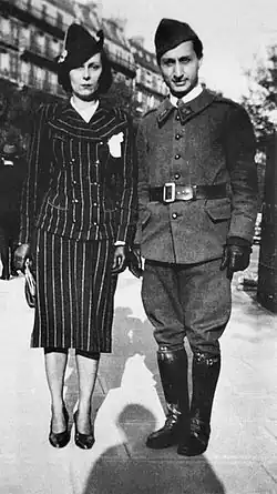 In the early 1930s, Knut separated from his first wife, Sarra Groboys, the mother of his son Daniel, and became close to Ariadna (Ariane) Scriabine (1906–1944, known as "Régine" in the Resistance), the daughter of the Russian composer Alexander Scriabin. At the same time he was becoming increasingly involved with Jewish activism, and he and Ariadna visited Palestine from August to December 1937; while he was there, Haaretz published one of his poems in Hebrew translation.[3] He edited the Jewish newspaper L'Affirmation from January 1938 to September 1939, attacking writers and intellectuals who showed sympathy for anti-Semitism. In September 1939 he was mobilized into the French army. Ariadna had become passionately devoted to the Jewish cause; they were married in March 1940 and she converted to Judaism at that time.[4] The next month they moved to Toulouse, where along with others they established a secret organization called La main forte [The strong hand], which became the Armée juive (AJ or Jewish Army), a World War II resistance movement. In December 1942, pursued by the Gestapo, Knut escaped to Switzerland; Ariadna gave birth to his son Yosi in May 1943. She was ambushed and killed by members of the French Militia while holding an AJ meeting at her flat in Toulouse in July 1944, two weeks before the city was liberated.