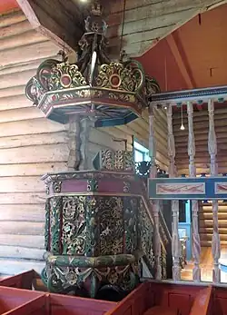 In 1840–1841, the church underwent a major renovation which included re-siding the building with slate panels as well as rebuilding the tower (it had been taller, but it was unstable, so a new lower tower was built). Also during this renovation, the floor of the choir was raised higher, above the level of the nave floor. In 1845, the foundation of the building was strengthened. The building was remodeled and restored again in 1910 when new floors were laid, the foundation was fixed, and the church was painted. The church was again restored in 1953-1954 when the interior was repainted and redecorated in an effort to bring back the historic look of the building.[4][8]