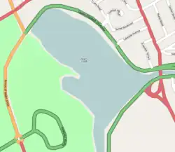 The lake is named after Abram Dow, an American-born settler who came to Ontario in the early 19th century and who owned land in this area in 1816. Before construction of the canal, this area was known as Dow's Great Swamp.[1] The lake was created when an earthen dam was constructed along the north shore (the north part of Queen Elizabeth Driveway is now atop the dam) to allow flooding for the canal. Originally, the Rideau Canal was to run north from Dow's Lake through property owned by Lieutenant John LeBreton, but land speculation and Lord Dalhousie's and Colonel John By's reluctance to reward such speculation resulted in the current location of the canal between the Lake, and Entrance Bay located between Parliament Hill and the Chateau Laurier.
