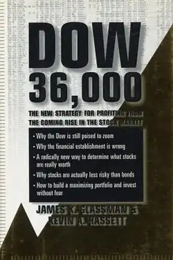 Dow 36,000: The New Strategy for Profiting From the Coming Rise in the Stock Market is a book published in September 1999 by conservative syndicated columnist James K. Glassman and conservative economist Kevin Hassett,[1][2] in which they argued that stocks in 1999 were significantly undervalued and concluded that there would be a fourfold market increase with the Dow Jones Industrial Average (DJIA) to 36,000 by 2002 or 2004.[3] The book was described as the "most spectacularly wrong investing book ever".[4] In the book, the authors argued that stocks did not have significantly greater risk than bonds in the long run and as investors came to that realization, stock prices would rise dramatically.[5] The authors expected the equity risk premium to dissipate, which never happened.[4] They also expected stocks to rise due to better fiscal and monetary policy, globalization, peace abroad and better corporate management.[6]