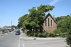 Downderry has a long beach of light shingle with road access to the beach via a slipway, although this is blocked by a locked gate, pedestrian access is still possible. Dogs are allowed on the beach. The beach further east is a nudist beach.[a][2] The village has a Village Hall which opened in 1891 and hosts a variety of events and activities, a Church of England church, a Methodist chapel, a pub, a Tapas Bar, a coffee shop and a primary school. The Church of St Nicolas Downderry began as a mission church to service the growing population of the village. The building dates from the late 19th-century.