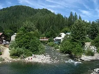 The Downie River is an approximately 5.5 mi (8.9 km) tributary of the North Yuba River in Sierra County, California, in the United States. The river originates from the confluence of the West Branch Downie River and Rattlesnake Creek in the Tahoe National Forest, and flows south to its confluence with the North Yuba at Downieville. The river drains a mountainous watershed of about 34 sq mi (88 km2) in the northern Sierra Nevada. Tributaries include Lavezzola Creek and Pauley Creek, which both join the Downie from the left shortly above the mouth.