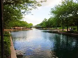 Recent developments in downtown Indianapolis include the construction of new mid- to high-rise buildings and the $275 million expansion of the Indiana Convention Center completed in 2011.[28][29] After 12 years of planning and six years of construction, the Indianapolis Cultural Trail officially opened in 2013.[30] The $62.5 million public-private partnership resulted in 8 miles (13 km) of urban bike and pedestrian corridors linking six cultural districts with neighborhoods, and significant arts, cultural, heritage, sports and entertainment venues in the downtown vicinity.[31][32][33][34]