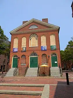 Old Town Hall is the earliest surviving municipal structure in Salem (dating from 1816–17) and is an outstanding example of Federal architecture. The second floor of the building, Great Hall, has always been used as a public hall, and contained town offices until 1837. The first floor, originally designed as a public market, now houses the Salem Museum.[4]
