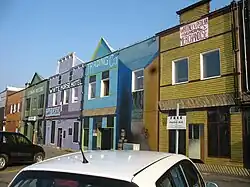 Downtown Whitehorse is the commercial centre of the city. The Yukon Legislative Building is located in this area and was built in 1976.[2] It is generally considered to extend from the narrows between the clay cliffs and the Yukon River just south of Taylor Street, north to the east–west leg of the Second Avenue extension, and from the Yukon River to the base of the clay cliffs. Business activities are mainly confined to 1st, 2nd, 3rd and 4th avenues, as well as adjacent sections of the cross streets, and mainly north of Hanson Street (third street south of Main). The remainder of the downtown is primarily residential.