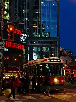The area is served by the Toronto Transit Commission’s Queen, Dundas, and College subway stations, as well as the Yonge bus and 501 Queen, 505 Dundas, and 506 Carlton street car routes.