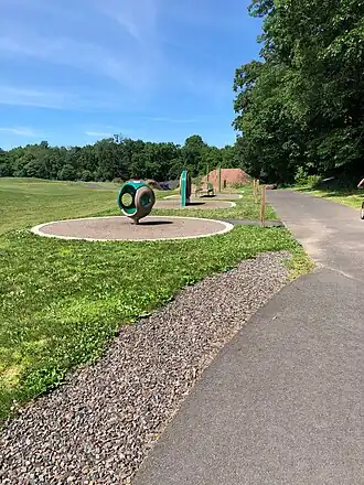 The Sensory Trail opened in October, 2016.[13] It is most readily accessible from the New Brittain road entrance. The sensory trail consists of 9 separate sections, called pods.[13] Some are located along the walking path, and others are within Hart's Woods along a boardwalk. 5 of the pods are wheelchair accessible.[14] Each pod highlights different sensory integration techniques, to help children of all needs (particularly on the autism spectrum) interact with the natural environment.[13] This sensory trail is thought to be one a kind in the state of Pennsylvania.[14] The sensory trail was created in response to the Park and Recreation board wanting to make Central Park more accessible to people of all abilities.[13] The sensory trail cost a total of $442,000 to build, with contributions from the Doylestown Township ($191,000), Foundations Community Partnership ($30,000), Doylestown Lions Club ($30,000), Village improvement Association ($30,000) and a grant from the Commonwealth of Pennsylvania, Commonwealth Financing Authority.[13] Foundations Community Partnership Grant, Boucher & James, Inc., Pickering Corts and Summerson as well as the Doylestown Township board of Supervisors helped with the design and construction of the sensory trail. Further expansion of the sensory trail may be added with more donations.[13]