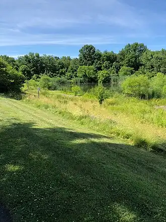 In 2004, Doylestown planned to acquire an additional 23 acres from the neighboring Doylestown Station Townhomes to become the new Environmental Education Area.[17] As with the construction of the original park space, the goal was to limit the changes made to the original land features.[17] The Environmental Education Area walking trail connects to the back of the Kid's Castle area, the adjacent neighborhood, as well as to the local Kutz Elementary School.[17] Funding from Pulte, DCNR, and PECO Green Region Open Space Program allowed for the opening of the Environmental Education Area to be dedicated and opened as an official part of central park in 2006.[17] A portion of the wetland education trail was completed in 2011.[17] The Edgar N. Putman Environmental Education Center was dedicated on May 13, 2011.[18] The invasive species trail was completed in January 2012.[17]