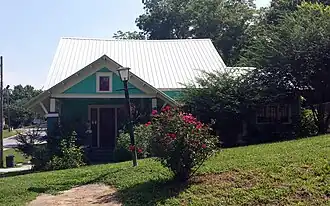 The Dr. J.O. Cotton House is a historic house at the southeast corner of Arkansas Highway 66 and High street in Leslie, Arkansas. It is a single-story Craftsman style structure, with an irregular layout focused on a gable-roofed rectangular core. A small single-story gabled wing extends to the right, and the entry porch projects forward from the left side of the front facade, with a gable roof that has exposed rafters and is supported by decorative braces on tall brick piers. It was built in 1915, originally at Walnut and High Streets, for one of the community's early doctors.[2]