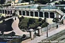 Drake's Place Reservoirs, constructed in the 1820s, are in North Hill just above Sherwell Church. They were expanded in 1891 and a 200 ft colonnade with a terrace on top was added so that people could relax by the water. The pillars of the colonnade were originally from The Shambles (butchers' stalls outside St Andrew's church) and from 1791 were re-used in the market before being relocated here.[18] In August 2010, a grant of £500,000 was awarded by the National Lottery towards the preservation of the landmark.[19]