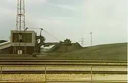 Fuel and other bulk commodities were supplied via a 6-mile (9.7 km) stretch of the old Hull and Barnsley Railway line off the Wakefield and Goole railway line. Rail facilities include a west-facing junction on the Goole line, gross-weight and tare-weight weighbridges, limestone and gypsum handling facilities, including a handling building and control room for the FGD plant, FGD Sidings G and H, biomass offload (Track A), coal offload (Tracks A, B and C), bypass line (Track D), oil siding (Track E) and ash loading (Track F) and an unloading building and control room.[54][55]