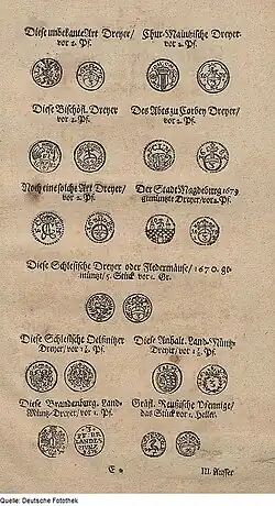 - Dreier of the city of Halberstadt, 1633 from the Cathedral Treasury and Cathedral of St. Stephen and St. Sixtus in Halberstadt, part of the Saxony-Anhalt Cultural Foundation, images and explanation via the portal museum-digital
