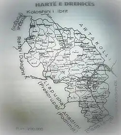 Draškovina was the name of a medieval Serbian župa (county) that included parts of Dukagjini and northern Drenica.[6] The area of Kosovo, including Drenica, was part of Vuk Branković's territory during the fall of the Serbian Empire.[7] Drenica was first mentioned as a župa at the end of the Middle Ages.[8] It was mentioned in 1413, when Đurađ Branković, his mother Mara, and brothers Đurađ and Lazar, endowed the village of Dobroševce to the Monastery of Saint Paul of Mount Athos. Despot Đurađ Branković (1427–1456) founded the Devič monastery in the region. There were many Serbian Orthodox monasteries besides Devič in Drenica, so it was often called the second Serbian Holy Mountain.[9] During the Ottoman period, the monastery of Devič was protected by local Albanian Muslims on whose territory Devič was situated on.[10]