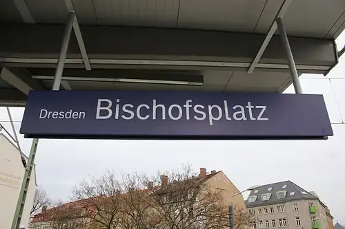 Dresden Bischofsplatz station (German: Bahnhof Dresden Bischofsplatz) is a railway station[1] in the town of Dresden, Saxony, Germany. The station is located on the Pirna–Coswig railway.