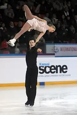 ![]() Andrew Wolfe lifting Camille Ruest in the free skate of the 2018 Internationaux de France | |