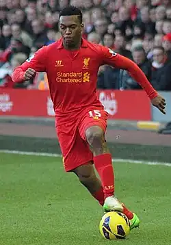 - Centre: Daniel Sturridge dribbles on the break in a match for Liverpool