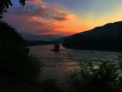 Drina river house (Serbian Cyrillic: Кућица на Дрини, Kućica na Drini) is a wooden, cabin-like house on the rock in the middle of the Drina river, near the town of Bajina Bašta in western Serbia. The original object was built in 1968 by a group of swimmers who needed a shelter. Until 2019, it was destroyed 7 times during the high water level in the river, but was rebuilt every time.[1]